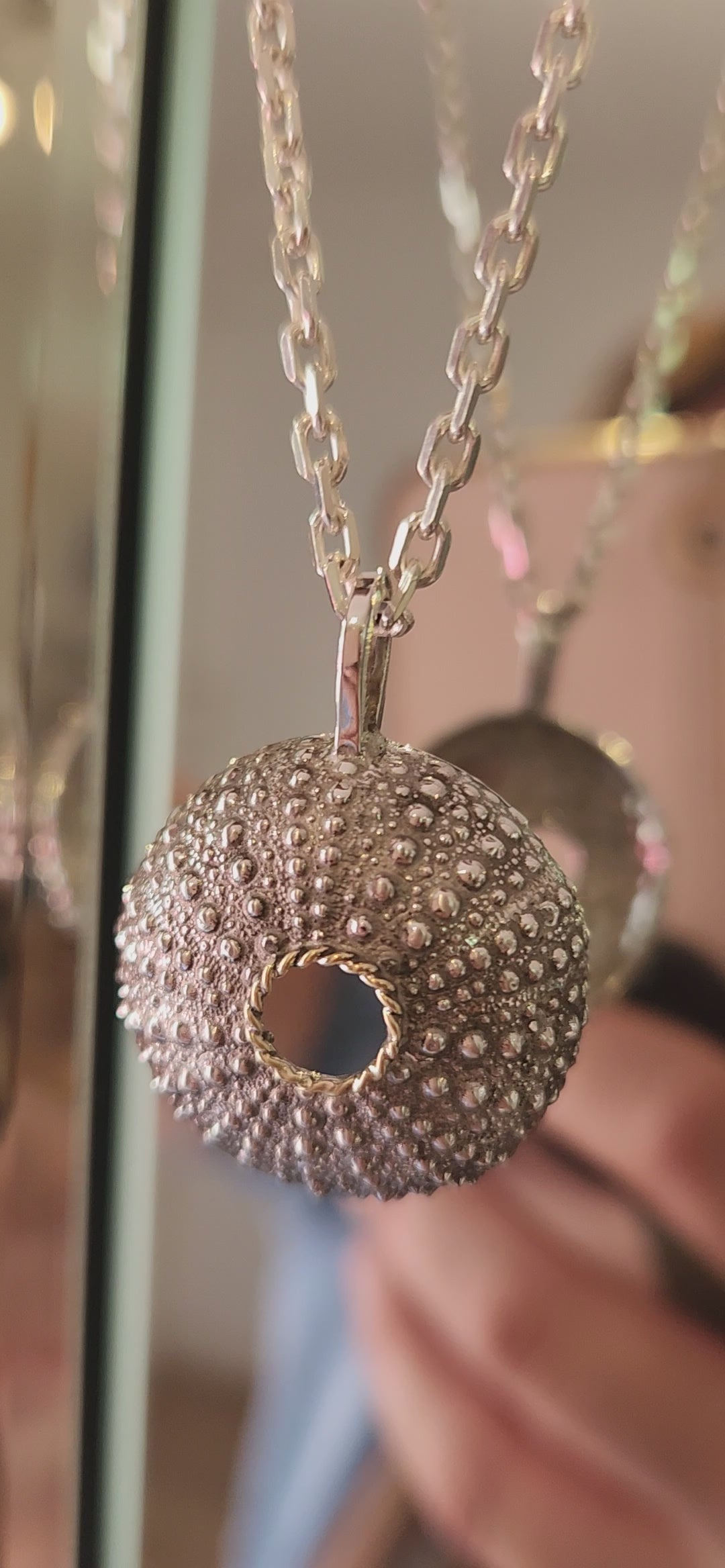 El Colgante ERIZO nace por el amor de mi hijo Luciano, quien desde niño le gustó explorar las costas y bosques. Recolectar palos, conchas y piedritas. Sin embargo, junto al mar, los esqueletos de erizo siempre cautivaron su atención. Esta serie es para él.